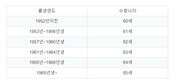 1953년~1961년 출생자: 만 61세~64세까지 수령 나이 점진적 상향.